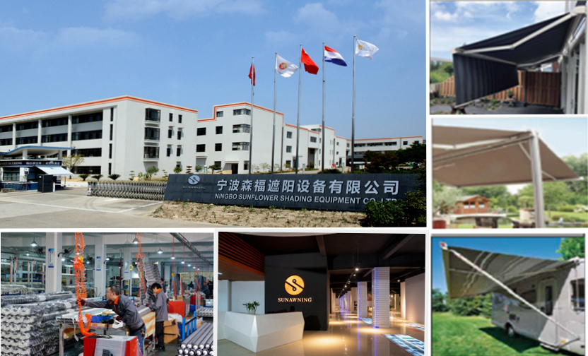 宁波森福遮阳设备有限公司专业研发、生产和销售半盒式/全开式遮阳篷、汽车遮阳篷、智能遮阳帘、凉亭、窗蓬、卷帘、遮阳网等系列遮阳产品,具有多年专业生产经验,拥有专业研发团队、独立测试实验室和先进自动化生产设备,生产厂房4.5万平米,具备年产30万个遮阳篷的生产能力,是TUV,SGS等测试机构的合作单位。产品全部通过各项质量认证,远销欧美及东南亚等70多个国家和地区。