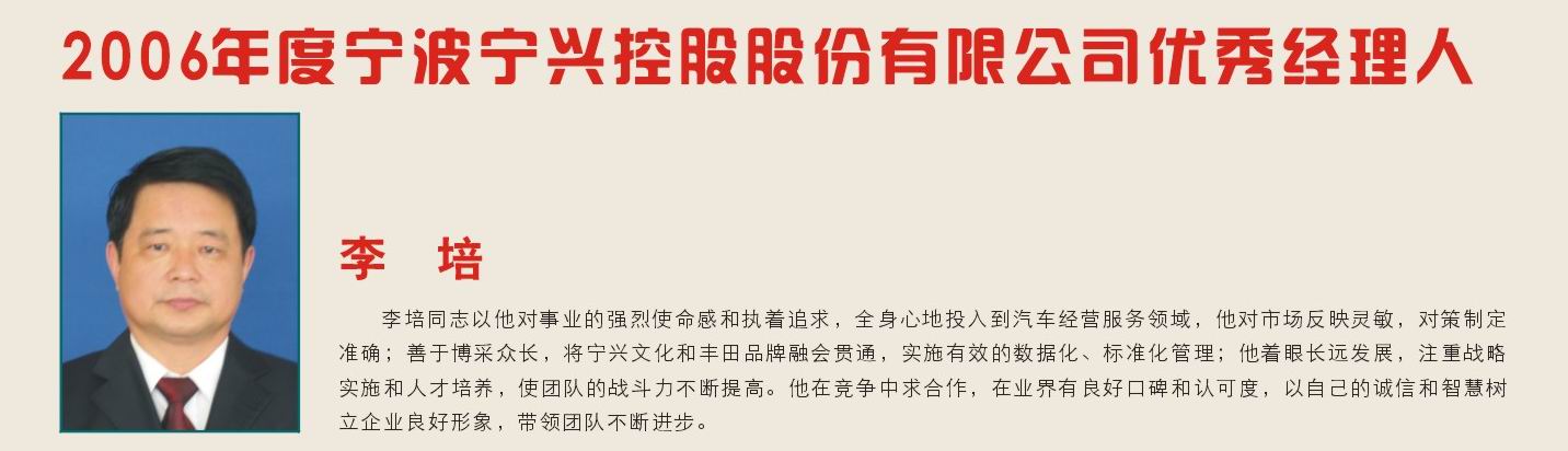 2006年度优秀经理人 (宁兴汽投总经理 李培)