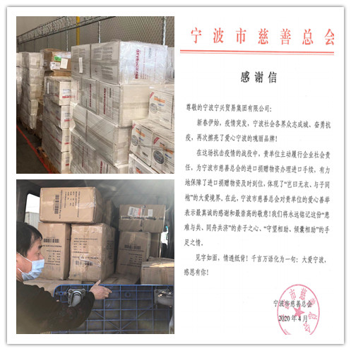 新冠疫情期间,宁兴贸易集团、宁兴优贝积极响应政府号召,全力以赴组织防疫和医疗物资进口,积极筹集防护和消毒用品,第一时间捐赠抗疫一线,为打赢疫情防控战作好物资保障工作。此次获评是浙江省商务厅对我司两家企业在疫情防控工作中突出表现给予高度肯定和嘉奖。