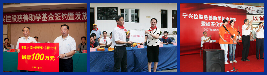 心系学子,全力资助教育事业。自1997年起,出资捐助宁波北仑白峰宁兴上阳小学(现已并入白峰小学),捐助金额累计120万元。2017年设立白峰小学“宁兴奖育奖学金”。自2003年起,出资400万元设立“宁兴控股慈善助学基金”,已先后四轮资助700余名宁波籍大学新生。2017年,牵手宁波达敏学校,关爱残障儿童,建立宁兴爱心洗车屋。