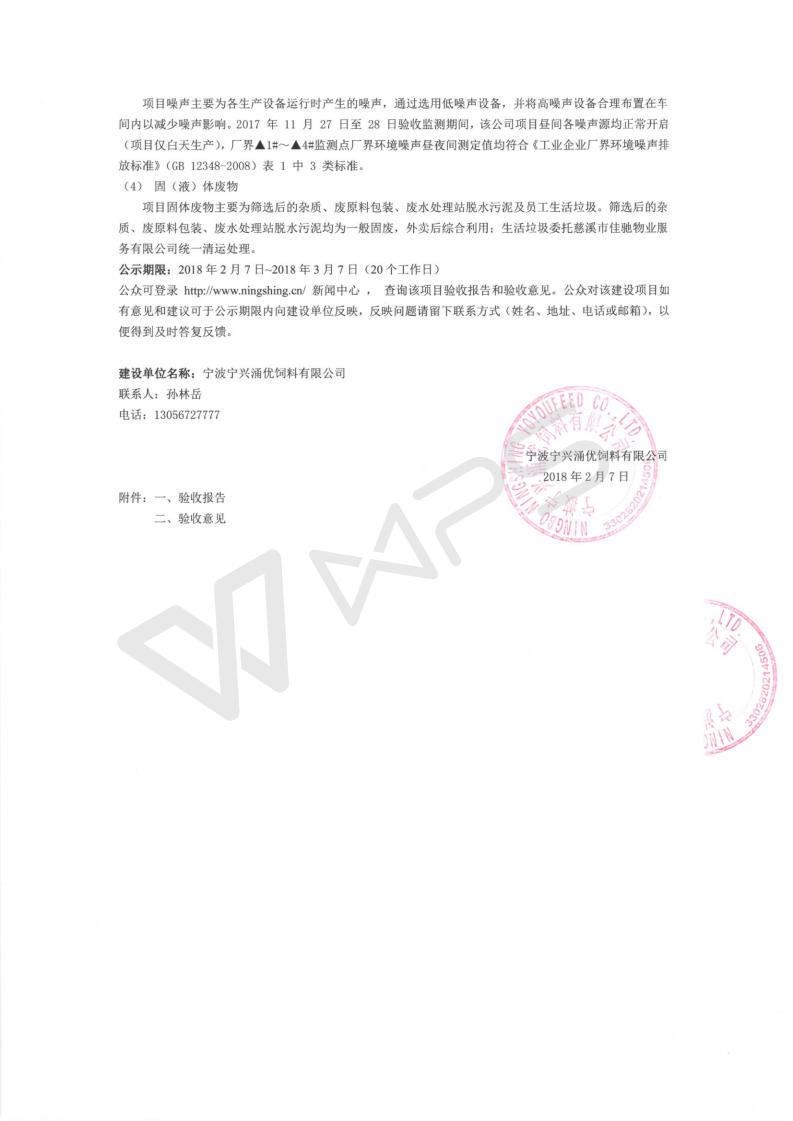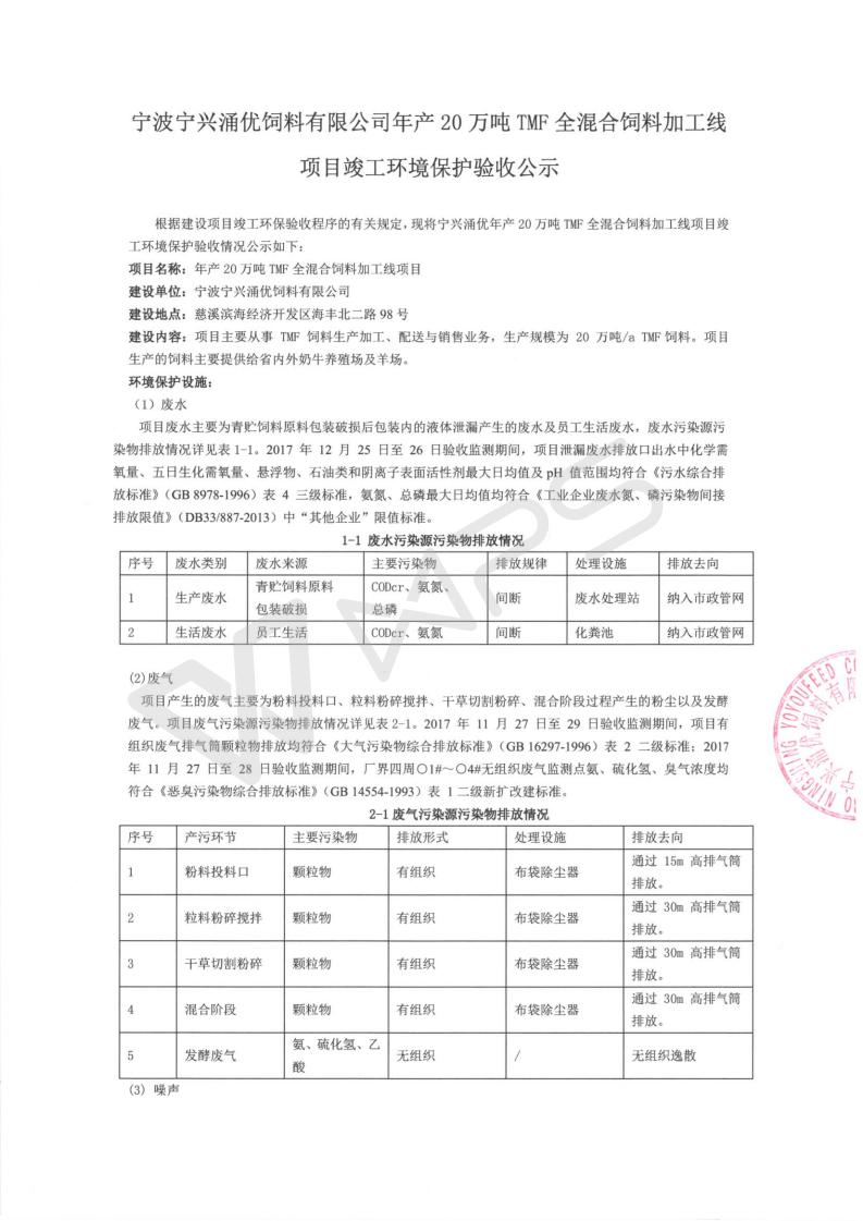 附件1:宁兴涌优20万吨饲料环保验收检测报告(201801).pdf