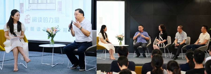 本次活动特别邀请了两位重量级嘉宾。第一位分享嘉宾是宁波电视台著名主持人,中国新闻奖获得者李飒老师。李老师不仅为大家分享了阅读的意义、专注聚焦的内涵和朗读的技巧,还呈现了一场精彩纷呈的现场访谈。宁兴控股董事长吴以刚、总裁黄永增、宁兴贸易集团副总经理李军波、宁兴恒骐总经理朱伟栋和国机宁兴汽车董事长张帆参与互动交流,为大家分享了对“专注聚焦”作为宁兴人座右铭精髓的深层次理解,公司与个人在外贸路上的专注和突破,坚持阅读的力量、丰田工匠精神的经典做法等精彩观点;吴以刚董事长更以宁兴二十多年的专业化发展诠释了专注与聚焦的力量,也向全体宁兴人传递了要学习、思考并学以致用,不断成长的期望。