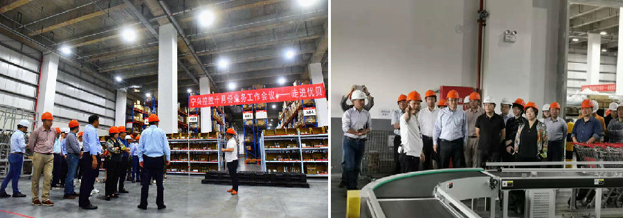 10月12日下午,宁兴控股各子公司董事长、总经理、跨境电商业务分管领导或负责人以及总部各职能部门负责人等一行30余人到访宁兴优贝仓储物流,参观了易海仓包装区、拣货待放区、食品化妆品监管库及恒温库、残次品与预包装存放区、收货理货区等区域。参观过程中,宁兴优贝物流跨境仓储部经理邓迎春从仓库的基本操作流程、增长数据、KPI标准等方面为大家做了详细的介绍和讲解。