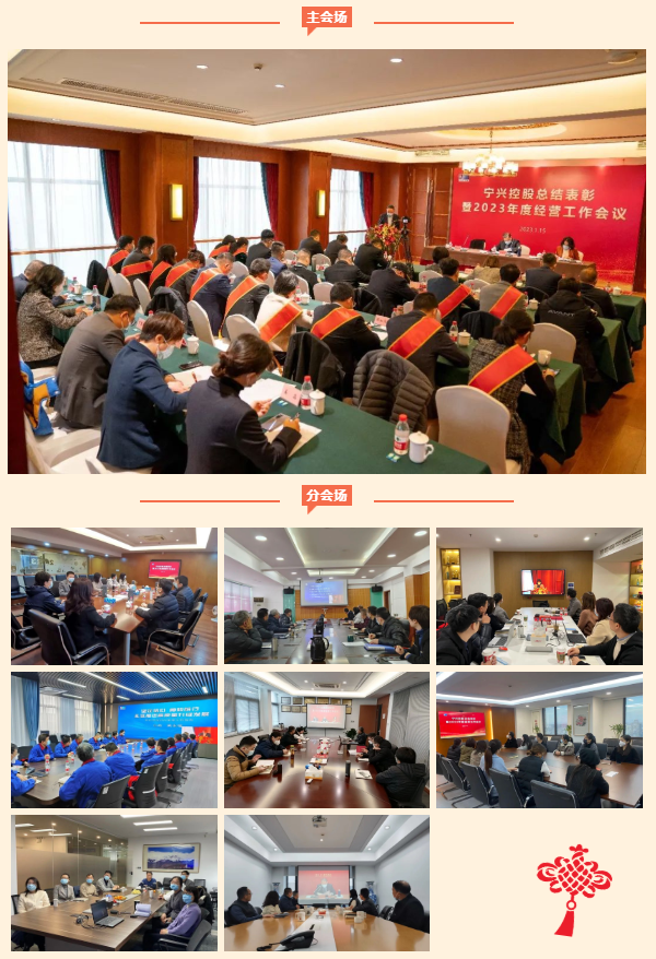 2023年1月15日下午,宁兴控股总结表彰暨2023年度经营工作会议在宁波天宁大厦28楼举行。本次会议采用线上线下相结合的形式进行,线下主会场来自各公司主要负责人、先进代表及控股总部代表共39人参会,线上分会场由各公司经营班子、部门负责人等共106人出席会议。
