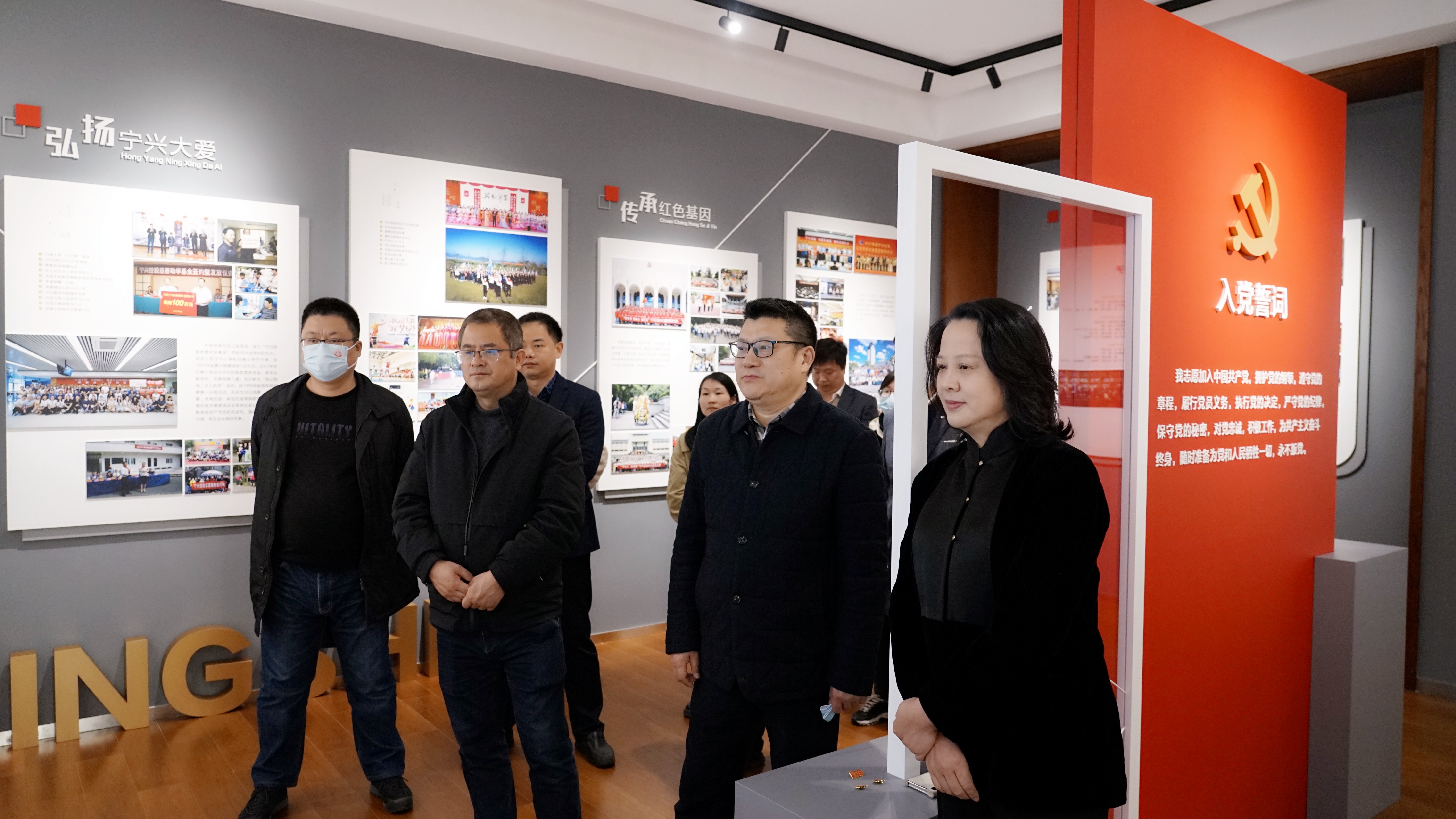 座谈会开始前,宁兴控股副董事长、党委书记高屏热情接待王效民副局长一行,陪同参观宁兴控股发展与党建文化展厅,观看企业宣传片,介绍公司整体情况。