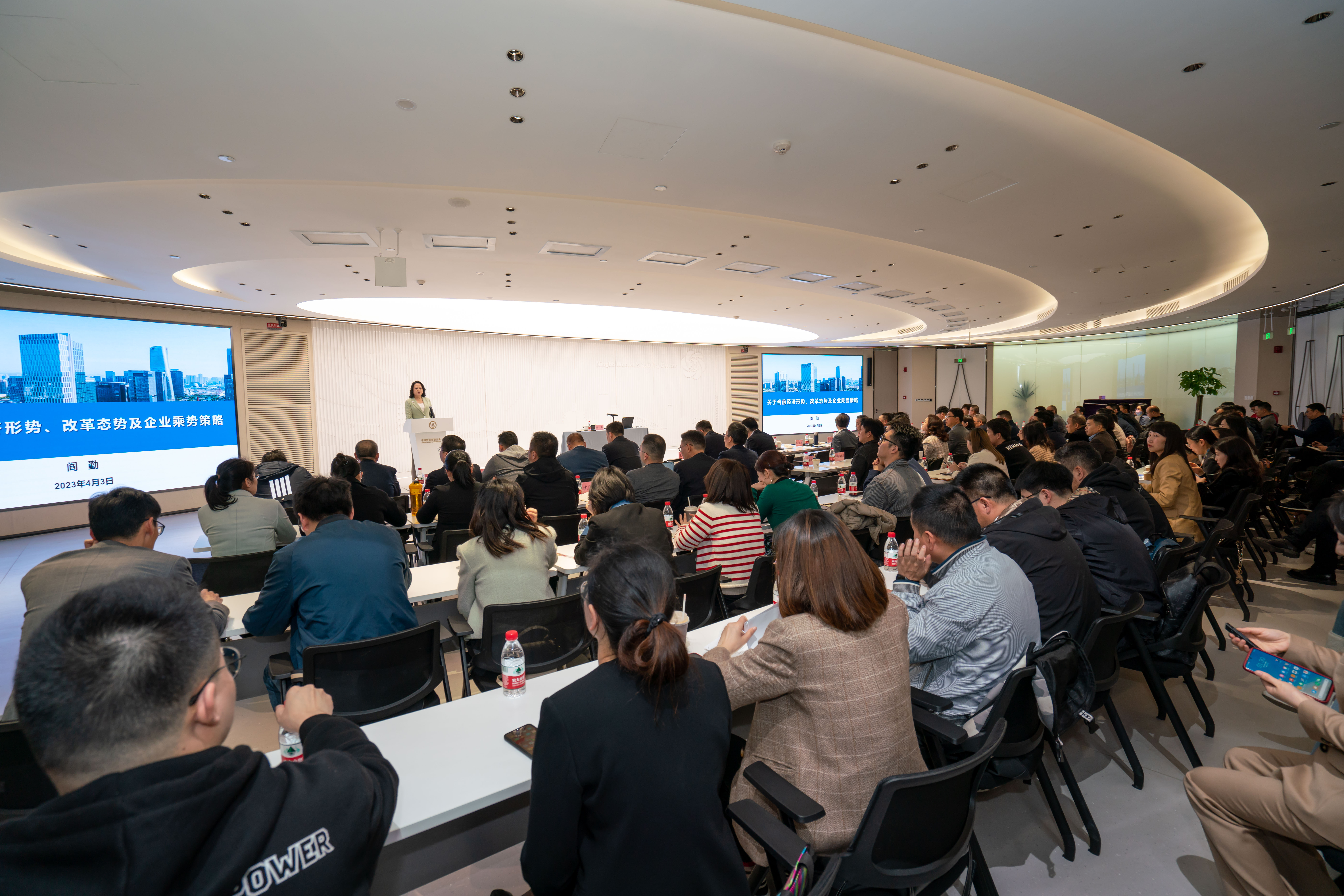 阎勤主任以《关于当前经济形势、改革态势及企业乘势策略》为主题,以翔实的数据和信息分析了当前面临的经济形势及全国两会后,国家各级层面释放的政策红利及企业契机;通过生动的案例介绍了在数字化建设、营商环境优化、共同富裕先行示范等六大改革态势;特别是针对企业顺势而进、逆势而上提出多方面策略建议。