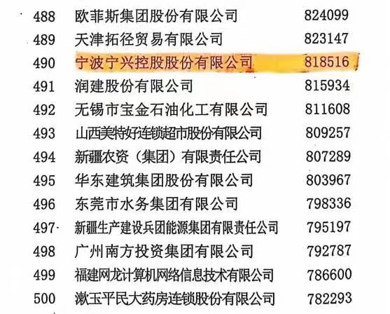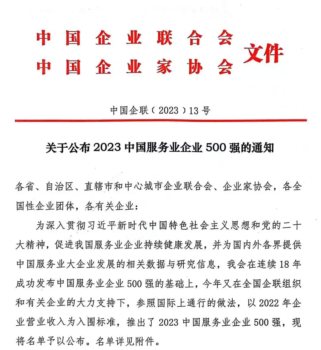 宁兴控股继续入选2023中国服务业企业500强