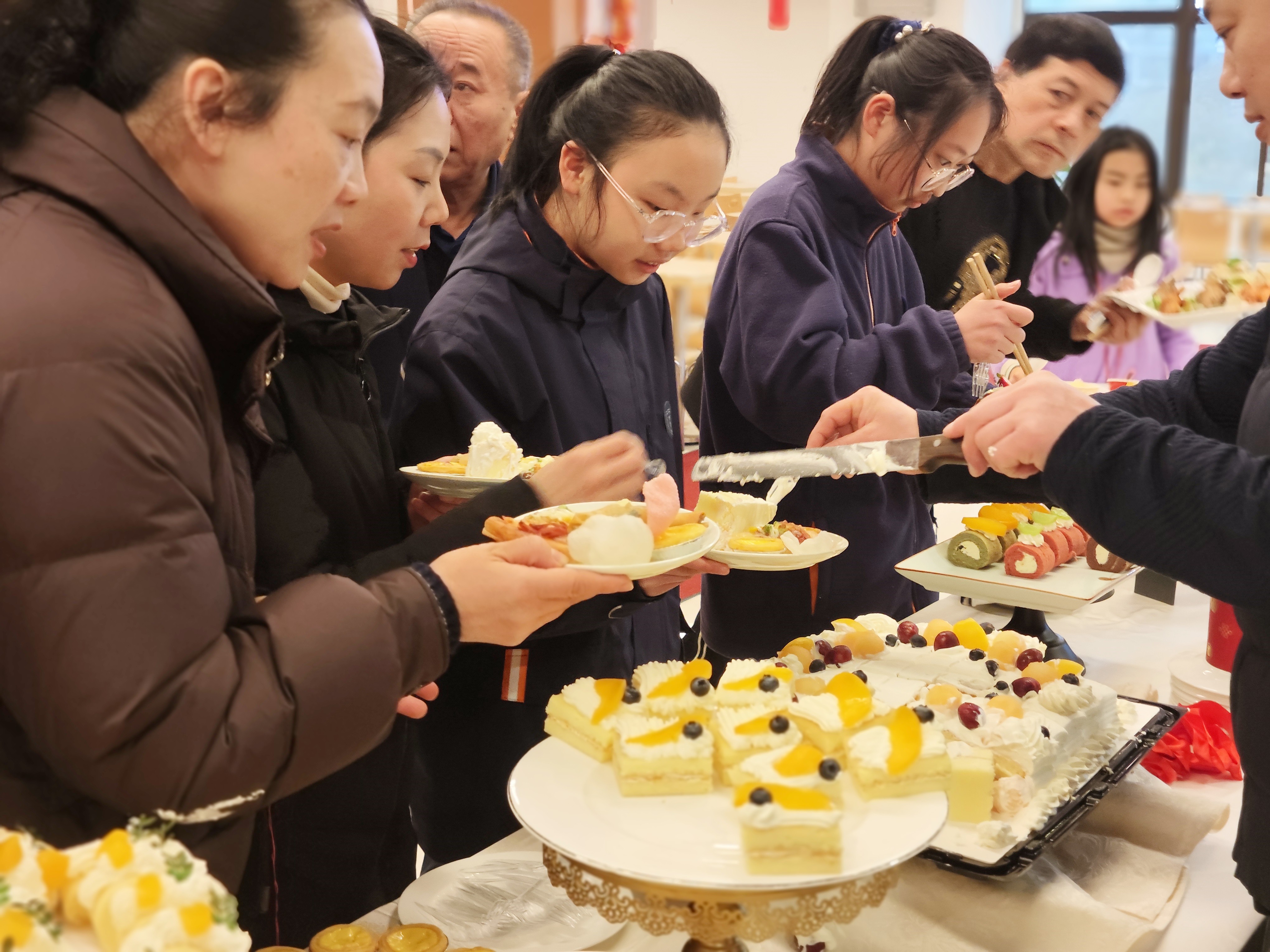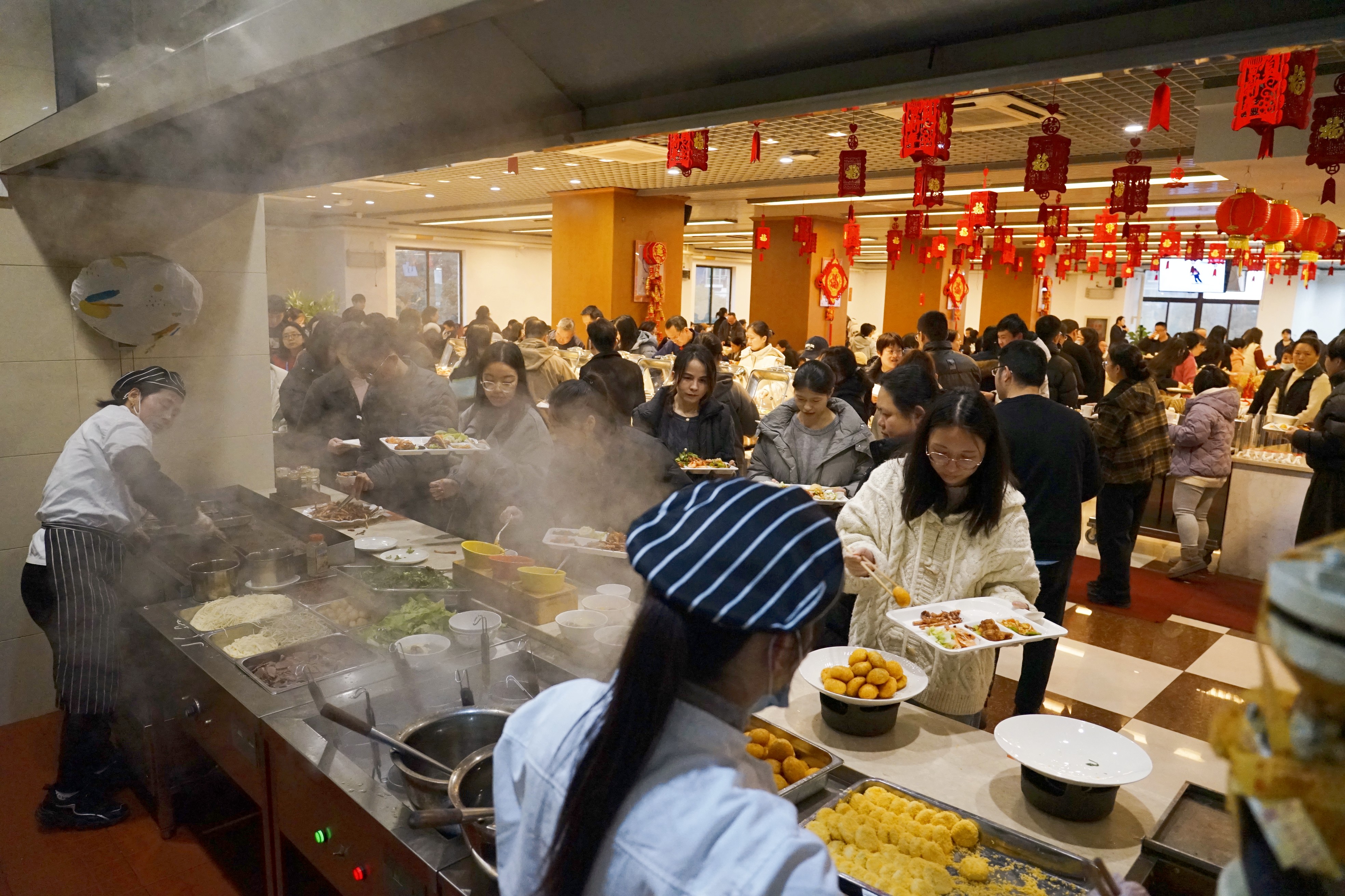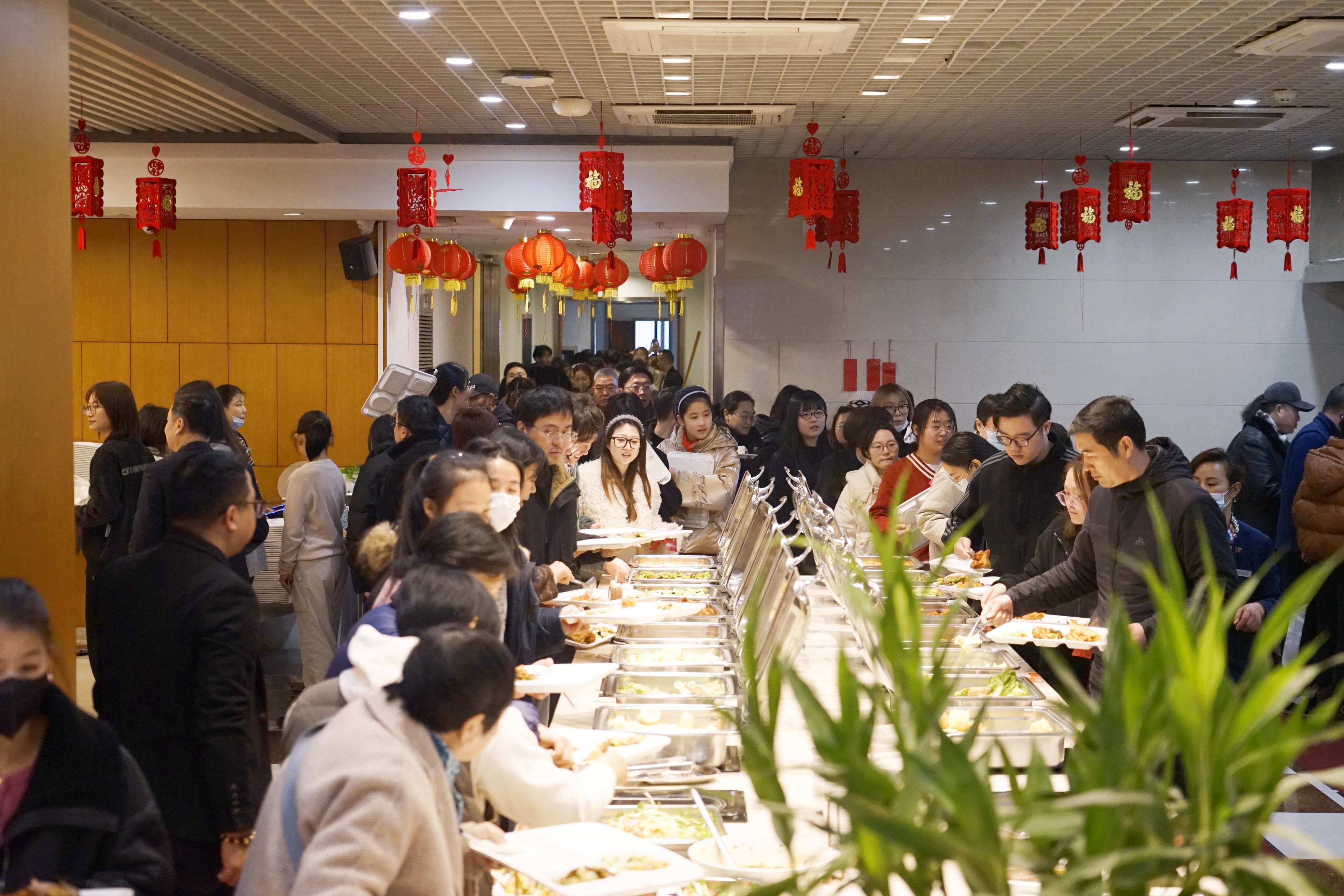 食堂内佳肴美食琳琅满目。既有热气腾腾的各类小炒、鲜嫩多汁的热气海鲜、手工制作的热汤面、软糯的彩色汤圆,还有清新爽口的沙拉、细腻绵软的蛋糕和甜蜜诱人的冰激凌。员工们围坐一起,边品尝美食边分享新年的故事,更感受着来自宁兴大家庭的幸福关怀。