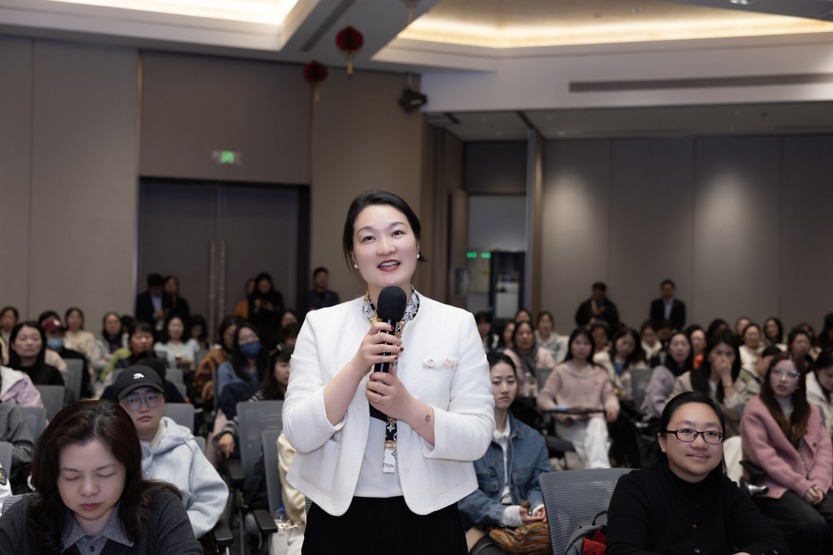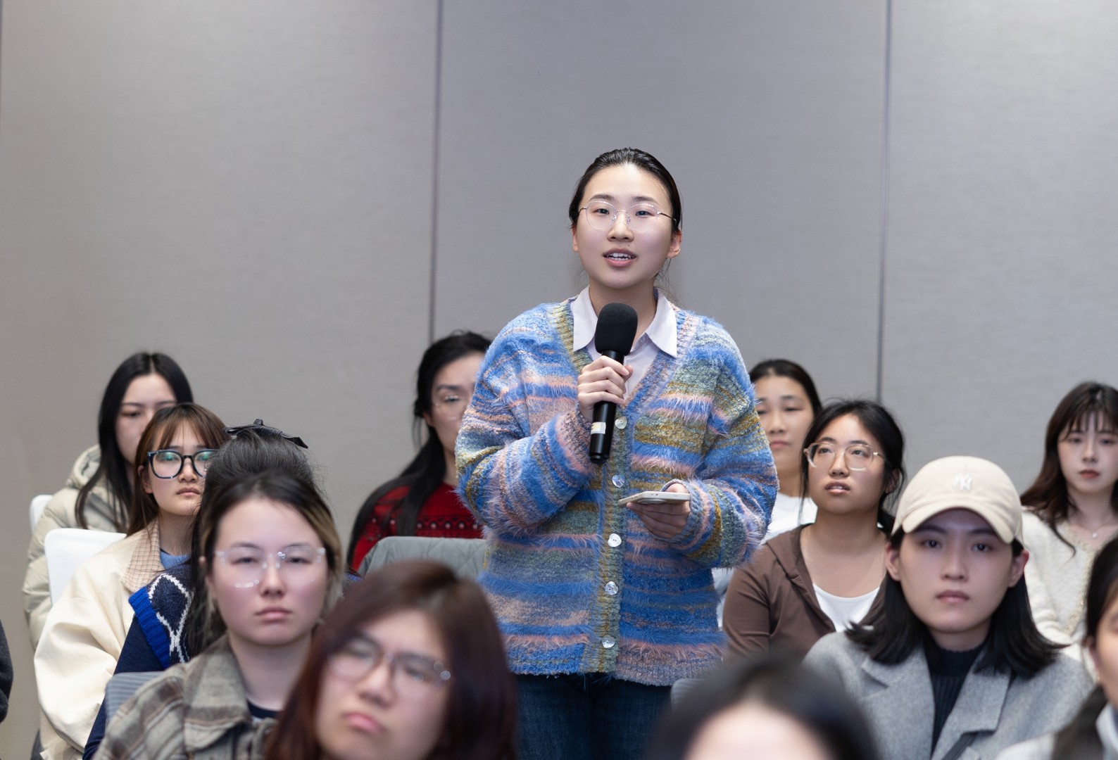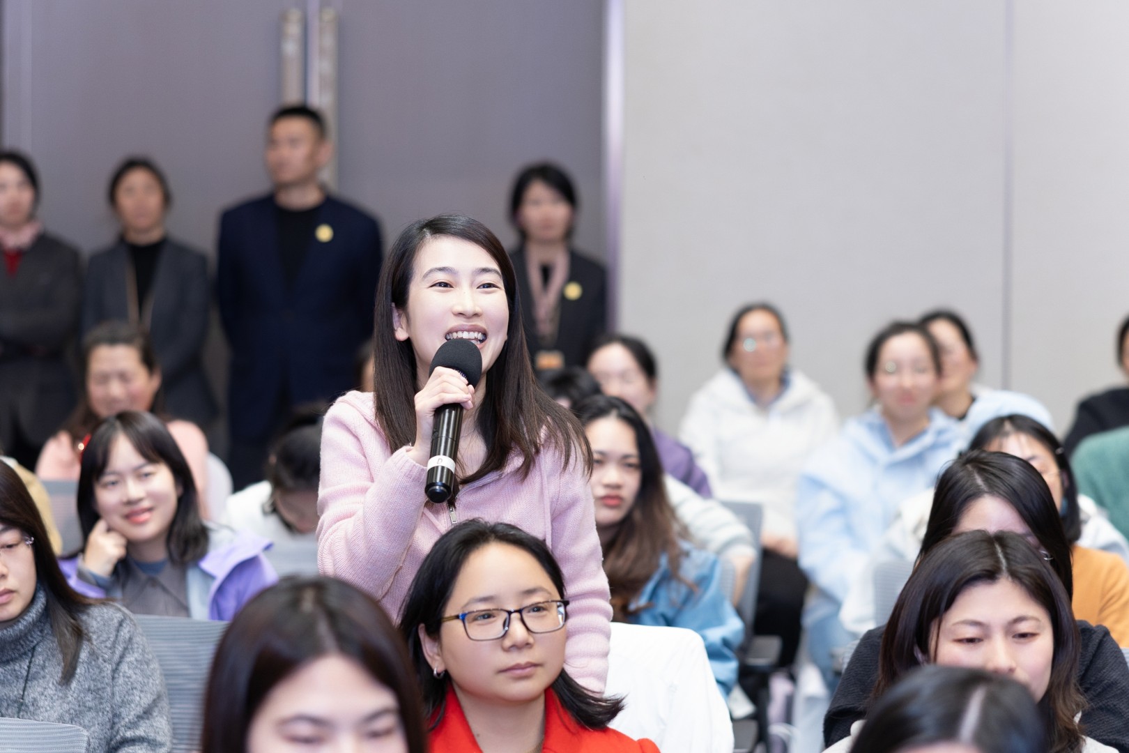 在专题讲座环节,万事利集团董事长屠红燕围绕两会最新政策动向、丝绸产业文化传承与科技创新、未来四大千亿产业布局等内容作精彩分享,为大家拓宽视野、启发思路。互动环节更是气氛热烈。大家就“品牌国际化的核心竞争力、浙商精神的传承与创新、AI赋能传统产业、美的内核与提升”等话题深入交流,屠红燕董事长知无不言,金句频出,以开阔视野、深邃洞察与温润格局,生动展现了新时代优秀女企业家的独特的智慧、魅力和风采,令在场人员深受启发,倍感鼓舞。