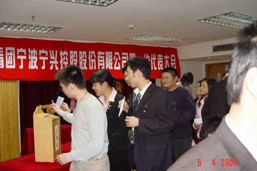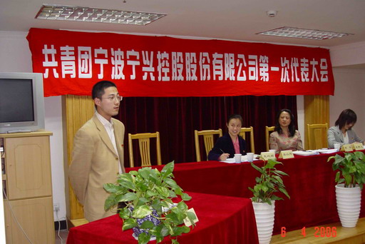 共青团宁兴控股股份公司第一次代表大会于2006年4月6日在天宁大厦会议室召开。股份公司原团委书记王屹颖同志对上一届团委工作做了总结。会议对2005年度的先进团员进行表彰,并由来自各控股公司基层支部的近40名团员代表通过投票选举的方式选出了新一届的宁兴控股股份有限公司团委委员(名单见本网站《通知公告》栏目)。