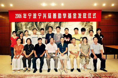 2006年宁兴慈善助学基金发放仪式于2006年8月23日在新芝宾馆举行。宁兴慈善助学基金设立于2003年8月,主要定向用于部分宁波籍考入全国各重点高等院校的贫困大学生的助学金。三年来,已资助了250名大学生。今年受助的60名大学新生,主要来自市区的海曙、江东、江北以及奉化等地,他们大都品学兼优,但家庭经济困难。今年的发放仪式以座谈会形式举行,宁波市慈善总会选派了12位受助学生代表参加。|