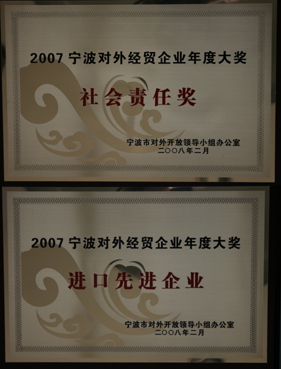 喜报!宁兴控股荣获2007年度宁波市对外经贸企业年度大奖--社会责任奖2008-02-21